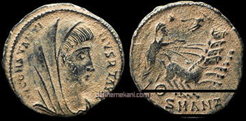 Aynı yıl Ticinum darphanesi kapandığı için, bir görüşe göre, Ticinum’daki darphane personeli Constantinopolis’e nakledilmişti.