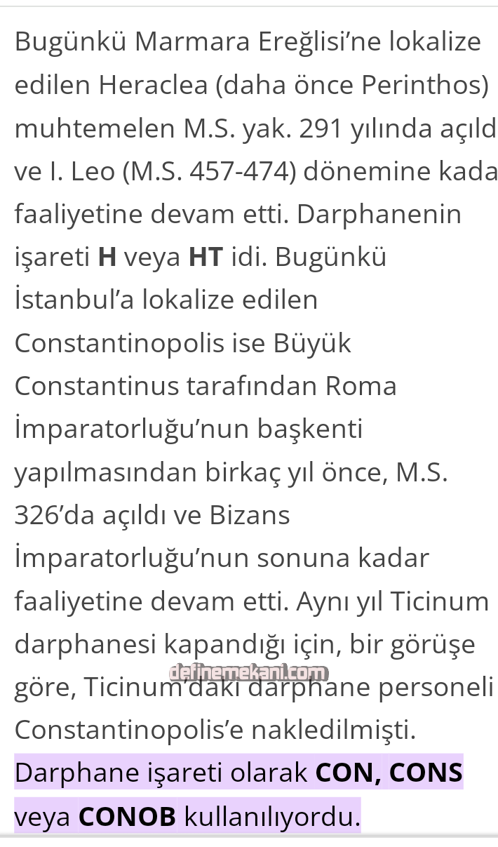 Marmara Denizi’nin kuzeyinde iki Roma darphanesi vardı. Heraclea ve Constantinopolis.